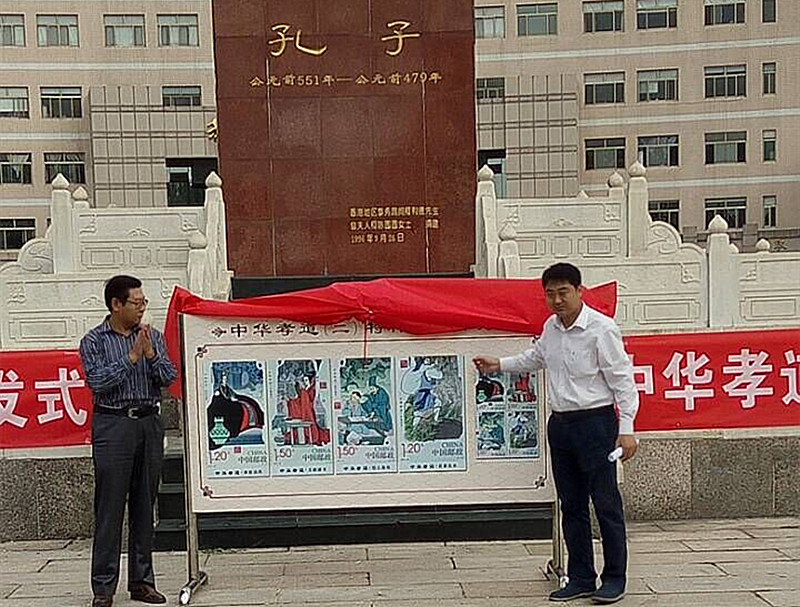 为弘扬中华民族的传统美德———孝道,10月7日上9时, 数学科学学院与中国邮政集团公司曲阜市分公司共同举行的《中华孝道(二)》特种邮票首发仪式在孔子文化广场举行。这是继中国邮政集团公司在2014年9月30日发行的《中华孝道(一)》特种邮票之后的又一套以弘扬中华民族传统美德——孝道为主题的特种邮票。
