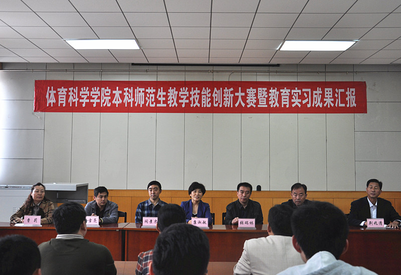 为提高体育师范生从师技能,培养造就 “师德高尚、理念先进、业务精湛、锐意创新”的优秀教师后备力量,4月28日,体育科学学院举行教学技能创新大赛暨教育实习成果汇报。副校长康淑敏,教务处、体育科学学院负责人出席大赛。担任此次大赛的评委有学校督导委员会专家、山东省教学能手、学校相关领域教授。