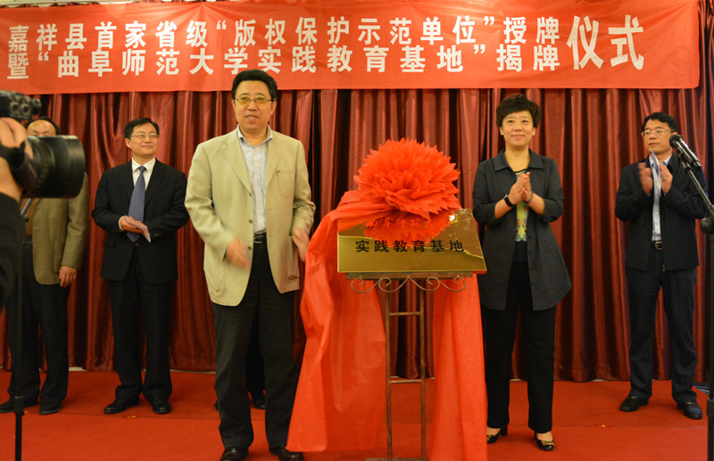 4月16日,我校与嘉祥县旅游文物局合作共建武氏祠实践教育基地揭牌仪式在嘉祥县举行。嘉祥县委宣传部尹露部长、济宁市文化综合执法局樊存常副局长、我校教务处张良才处长、历史文化学院成积春院长,以及嘉祥县旅游文物局、文化执法局、文明办等部门领导和我校师生代表100余人出席仪式。张良才处长与尹露部长共同为基地揭牌,成积春院长代表学校致辞。仪式结束后,我校领导、师生考察了嘉祥县国家重点文物保护单位武氏祠,并与嘉祥县旅游文物局领导就下一步的教学科研合作进行了深入交流。