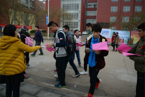 活动现场,来自日照市疾病预防控制中心的医务人员和校学生会同学们佩戴上艾滋病的象征符号红丝带,在校北门为在校大学生提供艾滋病问题的咨询,发放了艾滋病预防控制宣传单页、宣传手册、宣传扑克、宣传海报、红丝带等共计5000余份。