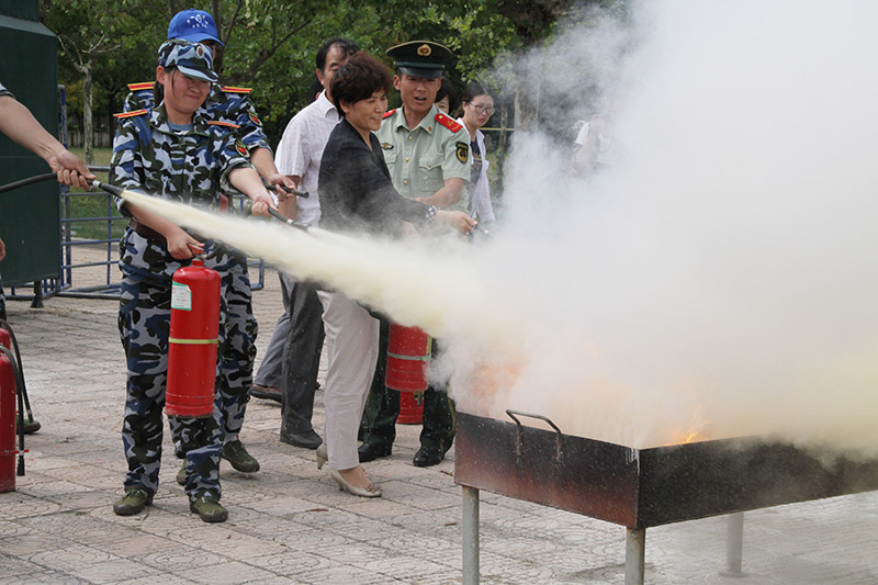 为了使2015级军训新生掌握应急避震、火灾逃生的正确方法,提高消防安全知识及防范意识,提高应对紧急情况和安全事故的能力,9月22日上午,日照校区为3883名新生在军训场上和宿舍园区上了一堂生动的“消防安全知识课”和“消防应急演练和地震逃生演练课”。副校长康淑敏亲临现场并参与到实战演练中,校区管理办公室、学生工作办公室、后勤保卫办公室等负责人,以及2015级全体军训新生参加了本次培训和演练活动。