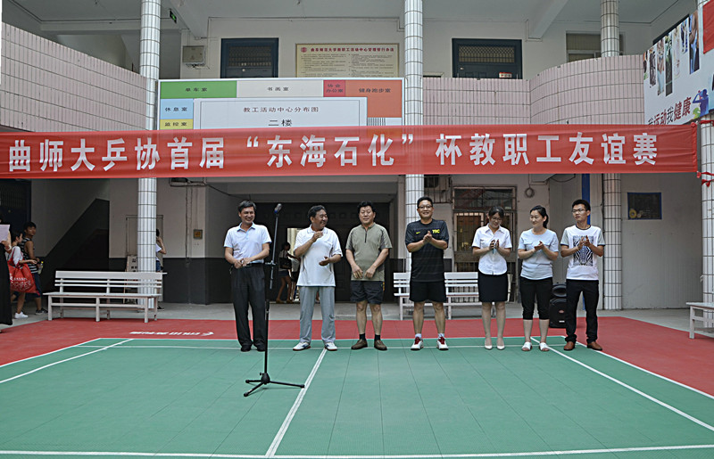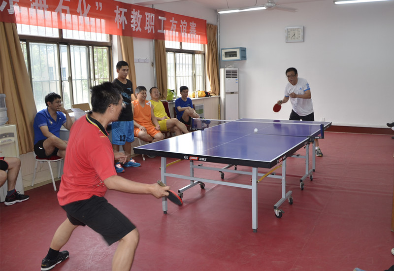 6月15日,校乒协首届“东海石化”杯教职工友谊赛拉开帷幕。校工会主席王万民、乒协名誉主席姚念章、乒协主席张立兴、乒协秘书长王连生、东海石化经理曹敬华、八不归山生态园经理孔栋、明德物业经理褚芬以及运动员、裁判员出席了开幕式。
