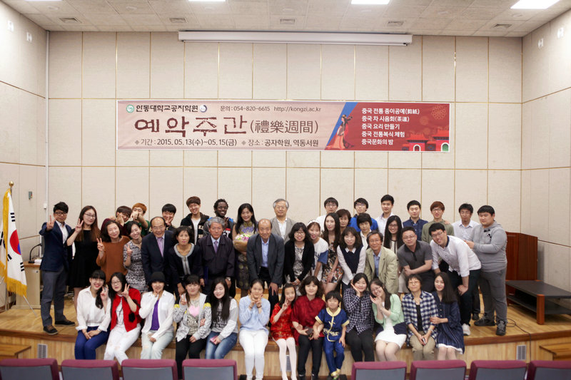 5月13日, 国立安东大学孔子学院为期三天的“礼乐周间”中国传统文化体验活动在安东大学易东书院和孔子学院内拉开帷幕,以剪纸、茶艺、彩绘脸谱、传统服装试穿、包饺子以及中国文化之夜为主要形式的活动内容,吸引了众多的学员和安东市民共计约645名人员前来参加,安东市议会议员、韩国礼节教育院院长以及安东大学教授等也纷纷前来体验。整个活动在春光明媚的五月里,为安东大学校园增添了一道亮丽的风景。