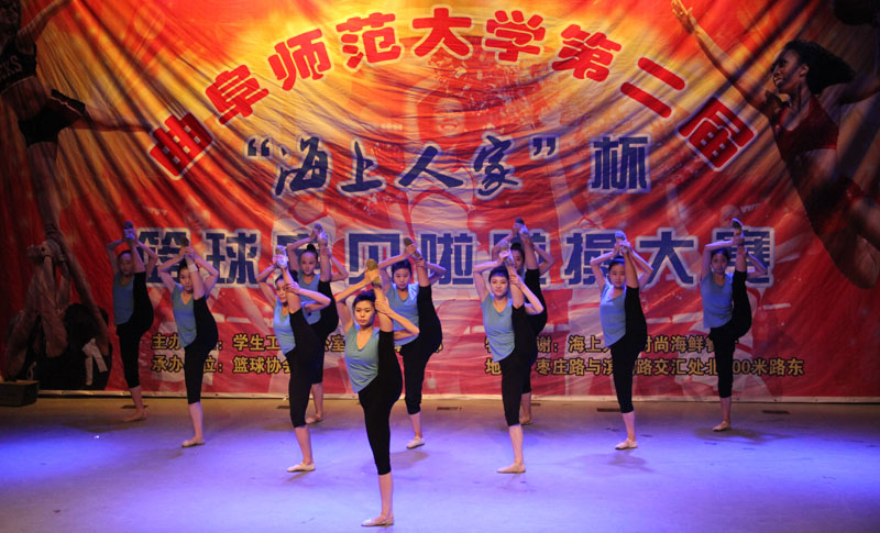比赛在2012级舞蹈专业学生优美的舞姿中拉开帷幕,随后11支代表队伴着动感的音乐,用精彩的舞蹈表演展示了曲园学生热情洋溢的青春朝气。地理与旅游学院的Super Me代表队以动感的舞步、活力的舞姿调动起全场的热情,将比赛气氛推向高潮。比赛期间,由篮协历届会长、音乐学院杨冰冰,十佳歌手马恬恬、张新曼,曲师大篮球队队员带来的《奔跑》、《对你爱不完》、《我的心里只有你没有他》、《老男孩》等歌曲更是为比赛增添了新的亮点,为到场观众献上了一场精彩的视听盛宴。