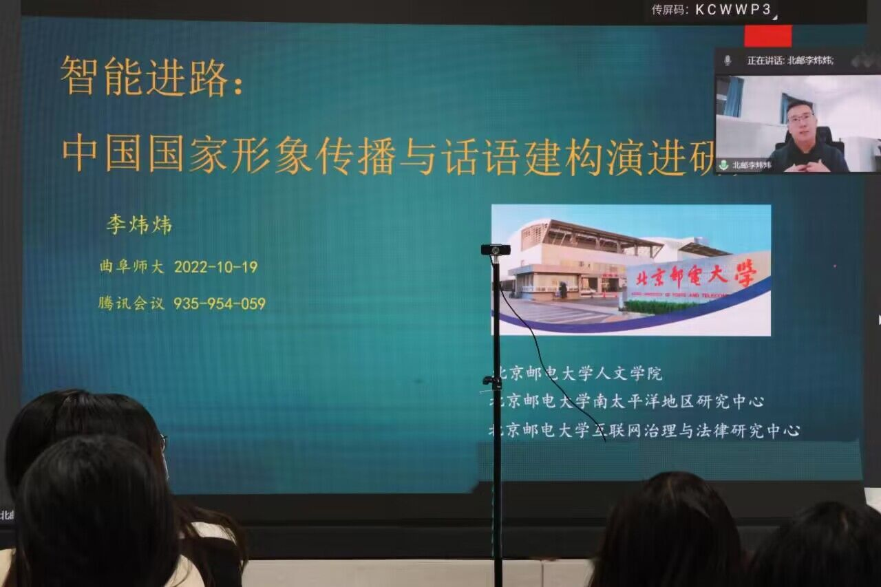 曲阜师大传媒学院讯 聚焦国际传播议题,立足新传前瞻视野,为开拓传媒学子在国际传播方向的视野,华体会官方网页版_华体会(中国)传媒学院于本学期举办新闻传播青年学者系列讲座第二季,讲座继续延用线上线下结合的形式,邀请了南开大学、北京邮电大学、杭州电子科技大学、外交学院等高校的青年学者,围绕计算传播学的国际传播研究、中国国家形象传播与话语构建演进、国际传播的媒介素养和中国学术旅居者跨文化适应等专题,与相关专业师生进行学术前沿研究分享。传媒学院副院长刘波出席讲堂活动,学院新闻传播系副主任孙浩主持讲堂,与各主讲学者进行学术互动。