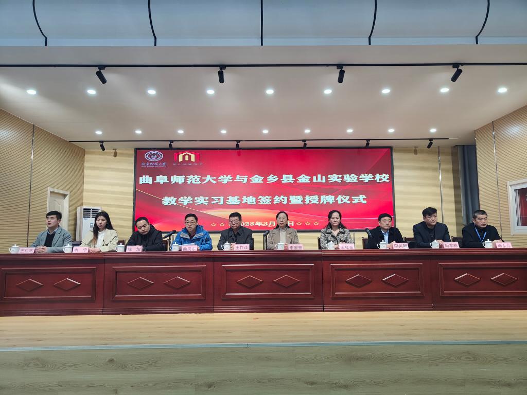 仪式上,金乡县教育工委副书记、教体局党委副书记李淑慧、数学科学学院党委副书记曲凤东、金乡县金山实验学校督学李树新分别致辞,表示教育实习基地建设是高校课堂教学的延伸,是高校专业实践教学的重要环节,双方将全方位协同,共同推进两校人才培养及教学科研建设。