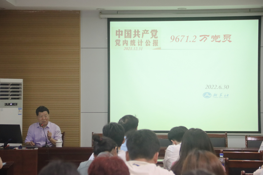 张立兴从新党章重大历史贡献入手,对新党章鲜明的时代特性进行解读,指出新时代党员要强化理论学习、强化政治意识、强化责任担当,努力做合格共产党员。