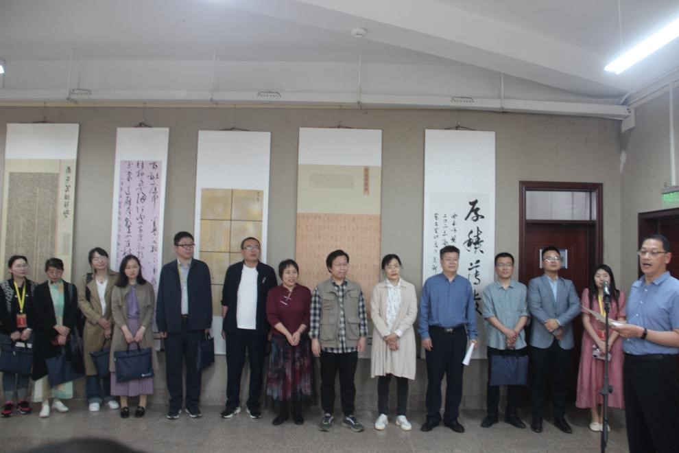 曲阜师大书法学院讯 5月27日上午,书法学院“厚积薄发——2023届毕业生作品展”在学院三楼书法馆开幕,出席开幕式的老师和嘉宾有,书法学院党委书记、院长刘建新,教研室主任杨坤衡、侯颖慧、董家鸿,辅导员老师刘育华、竺传铠、韩宜君,2023届部分毕业生代表。来自中国艺术研究院、中国美术学院、湖南大学等单位的10位优秀青年博士张彪、徐发,周俊卿、王晔,王宗良,王梦琦、陶琰、潘炳杰,陈长龙、邱茗应邀参加。党委书记、院长刘建新致辞。研究生辅导员刘育华主持开幕式。