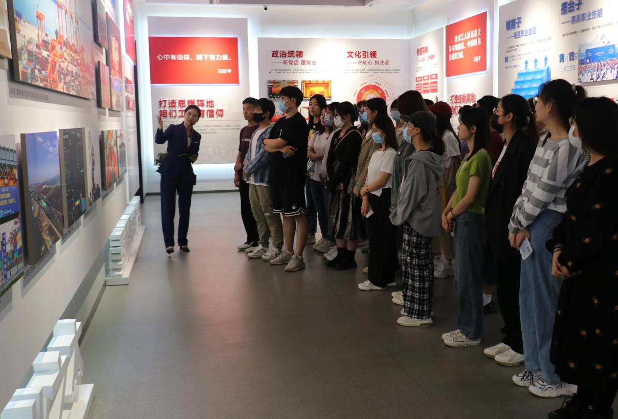 在讲解员的引导下,学院师生充分了解在山东港口一体化试点改革中日照港对于中国共产党人精神谱系与实践相结合的生动诠释:坚持政治统领,听党话,跟党走;坚持文化引领,坚持社会主义核心价值观,打造有港口特色的企业文化体系;坚持价值导向,以劳动模范和先进工作者为榜样,大力弘扬劳模精神、劳动精神和工匠精神。大家随后在创新成果展示体验区了解日照港在智慧绿色港口建设取得的成果。活动最后,师生们参观了劳模工匠创新工作室以及创新成果孵化空间。参观学习结束后,党员师生纷纷表示要以劳动模范和先进工作者为榜样,争做有理想、敢担当、能吃苦、肯奋斗的新时代好青年,在矢志奋斗中谱写新时代青春之歌。
