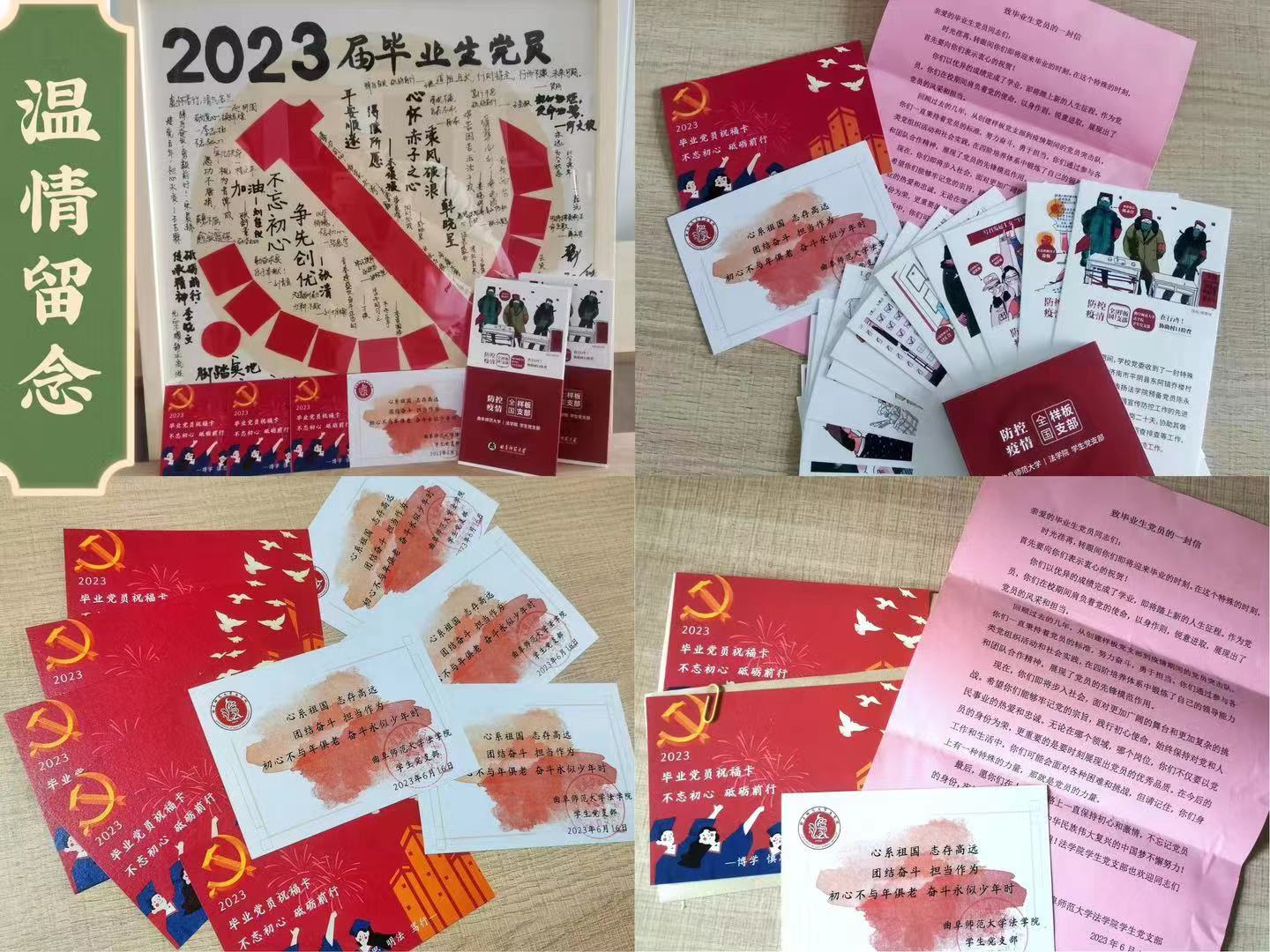 一张贺卡,饱含着党组织对党毕业生党员的深深祝福;一封书信,诉说着党组织对毕业生党员的殷殷期望;一本画册承载着毕业生党员与党组织的温情四年。小小的礼物蕴含了党支部对毕业生党员们大大的祝福,希望毕业生党员们在人生未来的征程中,守护初心,奋力前行,努力实现个人价值。