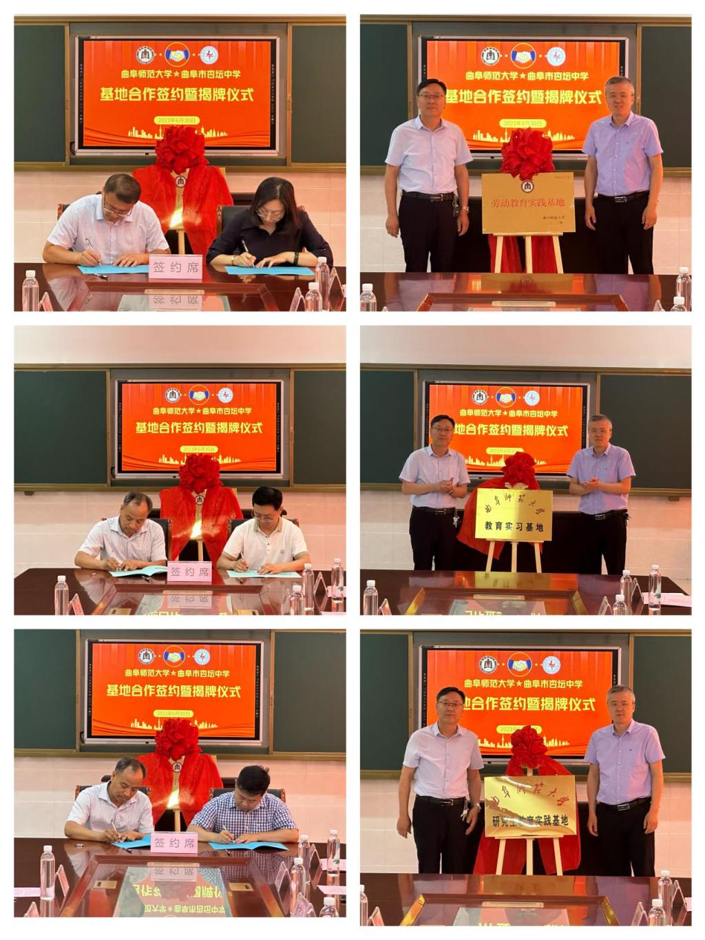 曲阜师大物理工程学院讯  为扎实推进主题教育深入开展,深化协同育人机制, 6月30日下午,物理工程学院领导班子成员、物理系负责人赴曲阜市杏坛中学开展基地合作签约。