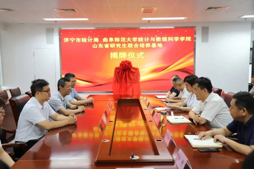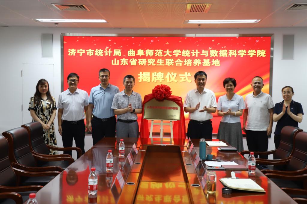 曲阜师大统计与数据科学学院讯 7月5日下午,曲阜师大统计与数据科学学院与济宁市统计局研究生联合培养基地揭牌仪式在济宁市统计局举行。济宁市统计局党组书记魏中齐、局长李长华、党组成员、副局长张乐,华体会官方网页版_华体会(中国)统计与数据科学学院院长赵胜利、副院长赵翔华、研究生工作负责人王文武出席揭牌仪式。