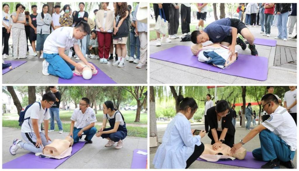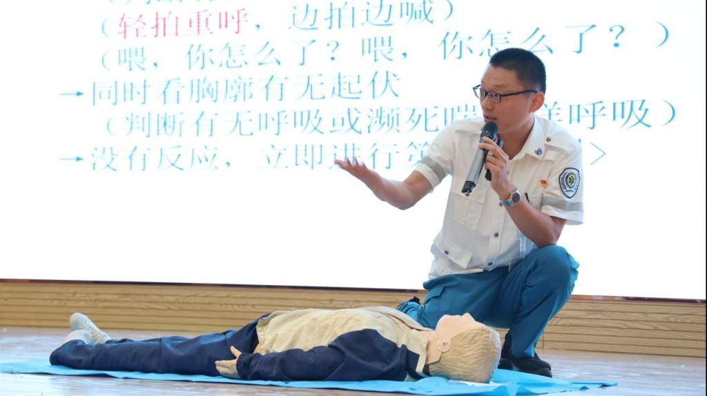 济医附院急救培训师团队就心肺复苏急救法进行演示教学和实操训练