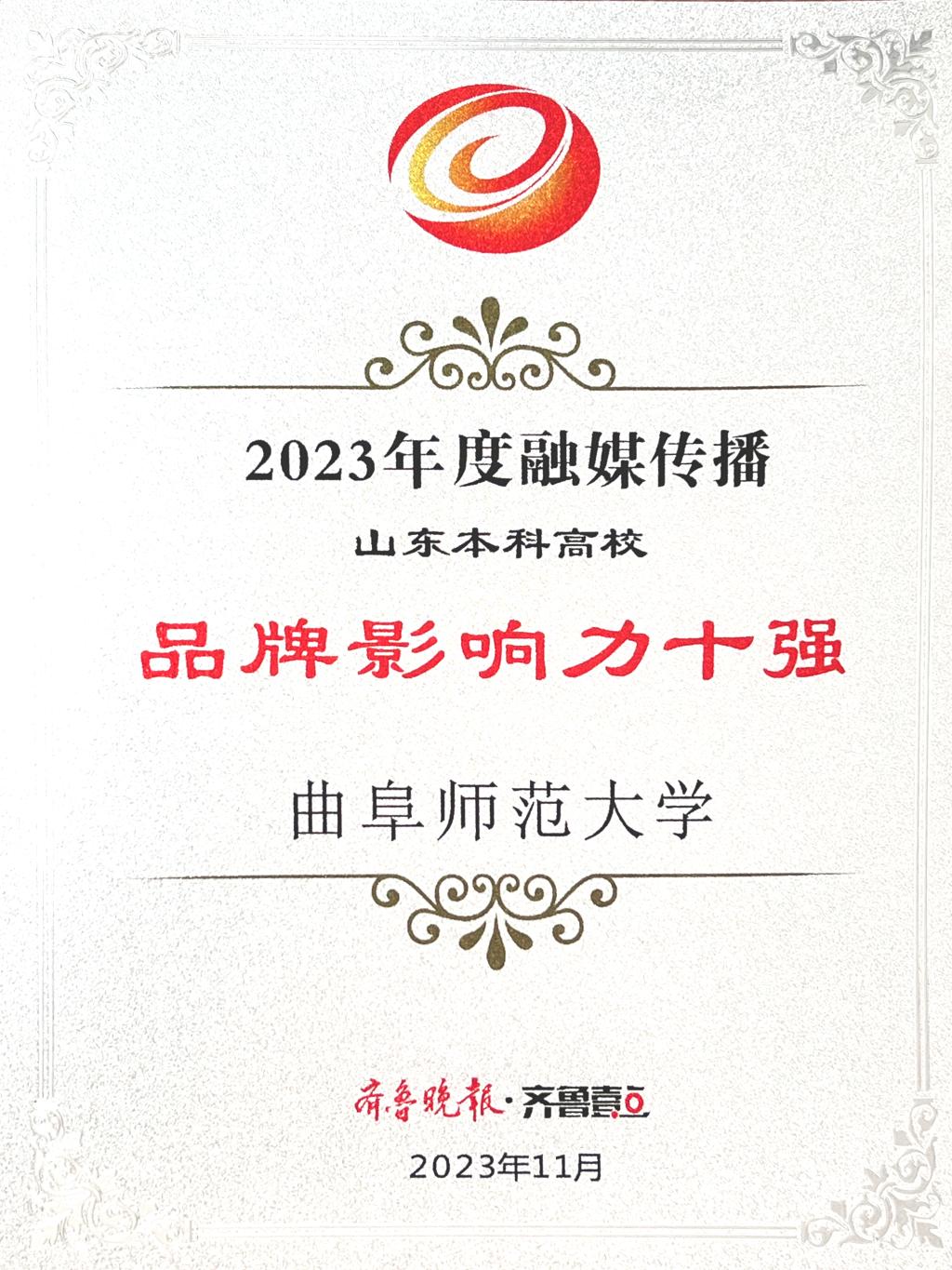 曲阜师大党委宣传部讯 聚焦融媒传播,讲好大学故事。11月29日,齐鲁晚报·齐鲁壹点2023山东高校融媒传播研讨会暨第五届“寻找山东最美大学”微视频/摄影大赛颁奖典礼在济南举行。大会发布了2023年高校融媒传播榜,华体会官方网页版_华体会(中国)获评“2023年度融媒传播品牌影响力十强高校”(本科组)和“融媒传播创意高校”。