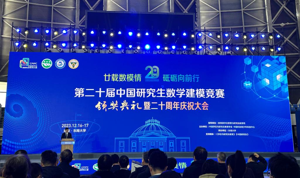曲阜师大研究生处讯 12月17日,第二十届中国研究生数学建模竞赛颁奖典礼暨庆祝大会在东南大学举办,本次竞赛共有来自国际和全国各省、自治区、直辖市、特别行政区507个研究生培养单位的19898队研究生参赛,其中曲阜师大共有60支队伍参赛,荣获全国二等奖6项、三等奖4项,1名指导教师获得“先进个人”表彰,获奖数量位列山东省属高校第三,取得历史性突破。