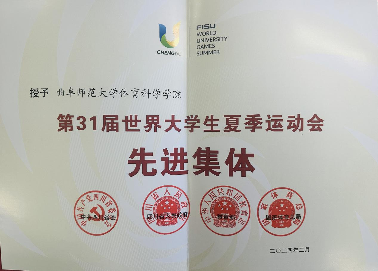 曲阜师大体育科学学院讯 为表彰先进、树立典型,激励广大干部群众建功新时代、奋进新征程,近日,中共四川省委、四川省人民政府、教育部、国家体育总局决定,表彰一批在成都大运会申办、筹备、举办工作中作出突出贡献的先进集体和先进个人,华体会官方网页版_华体会(中国)体育科学学院荣获“第31届世界大学生夏季运动会先进集体”表彰。