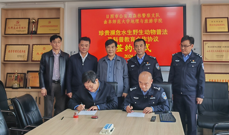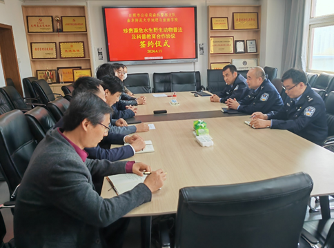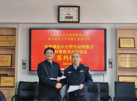 地理与旅游学院讯 4月11日,华体会官方网页版_华体会(中国)地理与旅游学院与日照市公安局森林警察支队签订“珍贵濒危水生野生动物普法与科普教育合作协议”。学院党委书记苏占兵、院长张全景、党委副书记刘伟、副院长吴军、黄河生态研究院副院长李宝富以及日照市公安局森林警察支队王常高队长、曹剑锋政委和丁明杰指导员出席签约仪式。