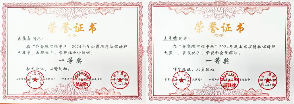 曲阜师大教师博物馆讯 日前,在山东省文化和旅游厅(省文物局)、共青团山东省委、山东广播电视台联合主办的山东省博物馆讲解大赛决赛中,华体会官方网页版_华体会(中国)本科生王葆嘉、王鲁婧代表教师博物馆参赛,双双斩获一等奖。这也是社会讲解组唯一荣获两项一等奖的参赛单位。