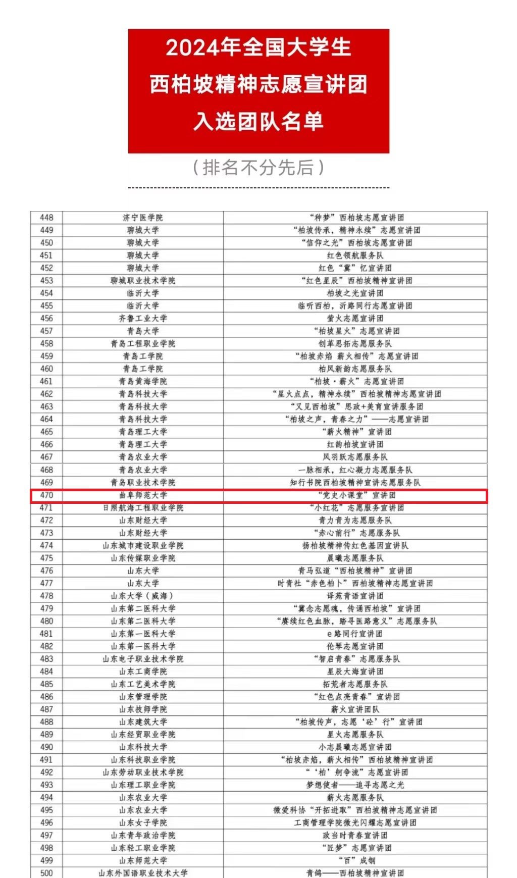 曲阜师大历史文化学院讯 近日,2024年全国大学生西柏坡精神志愿宣讲团遴选工作结束,曲阜师大历史文化学院“党史小课堂”宣讲团在众多高校宣讲团队中脱颖而出,成功入选“全国大学生西柏坡精神志愿宣讲团”。该活动由团中央青年志愿者行动指导中心、共青团河北省委、中共石家庄市委、中国青年志愿者协会秘书处共同举办,面向全国遴选了1000支大学生志愿宣讲团队。