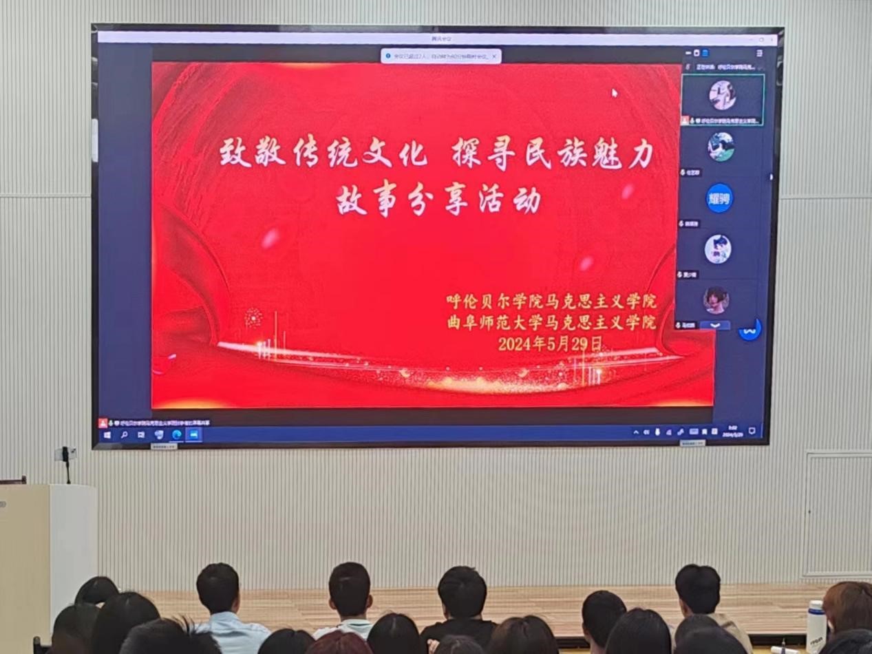 曲阜师大马克思主义学院讯 为弘扬和传承中华优秀传统文化,培育爱国情感和民族精神,5月29日,华体会官方网页版_华体会(中国)马克思主义学院与呼伦贝尔学院马克思主义学院以线上线下结合的形式,共同举办“致敬传统文化,探寻民族魅力”故事分享活动。