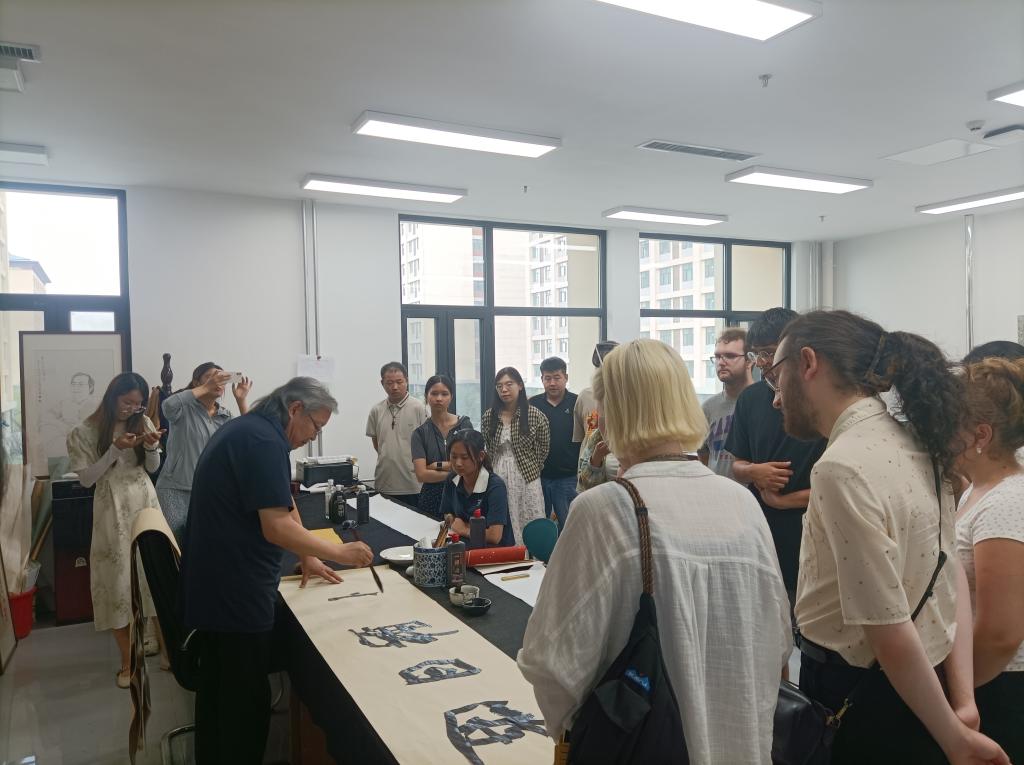 在曲阜师大学生志愿者的陪同下,两所学校的美国大学生参观了学校新图书馆;访问了美术与书法学院,临摹书法,与乌峰教授进行了交流学习;随后参观了教师博物馆。