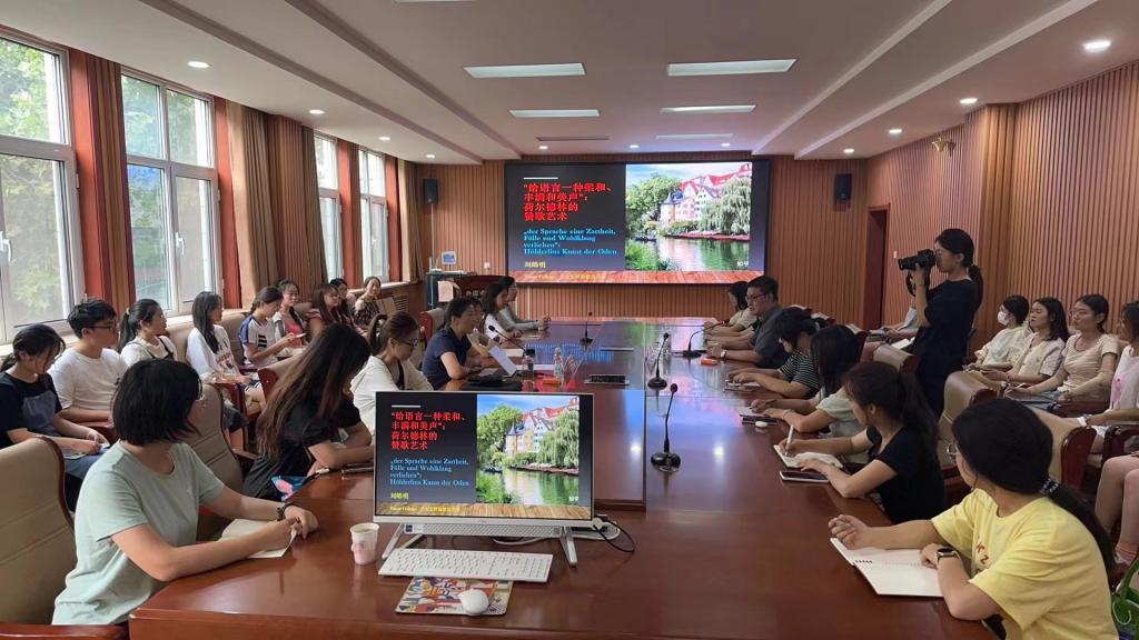 在随后的交流活动中,巴德学院李惠文教授就美国汉语教育理论与实践问题与文学院师生进行了互动交流。凡萨学院刘皓明教授为外国语学院师生作了题为“荷尔德林的赞歌艺术”的学术报告。