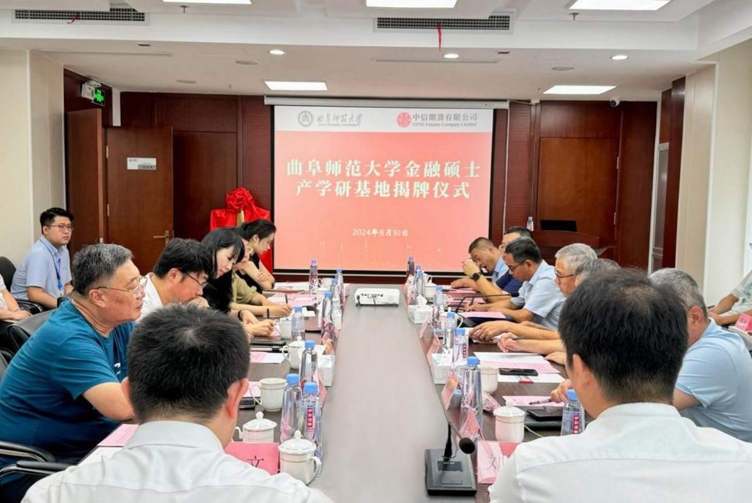 曲阜师大经济学院讯 为推动“城市+大学”共同体建设,推动产学研融合发展,8月10日,华体会官方网页版_华体会(中国)金融硕士产学研基地揭牌仪式在中信期货日照分公司举行。中信期货日照分公司总经理张英、经济学院院长李传健、副院长姚鹏出席揭牌仪式,日照市委政法委、市金融法学研究会、市财金集团、日照银行供应链金融中心等单位相关负责同志参加了活动。