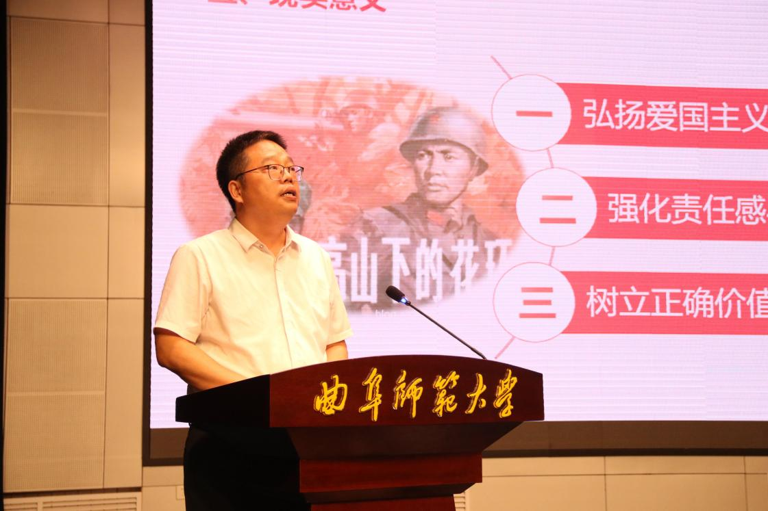 田维柱指出,这部作品以历史史实为依据、从社会实际生活出发,从人物的个性出发,深刻反映出老一辈革命者在艰难困苦的战争环境中,坚守祖国和人民的利益高于一切、为了祖国和民族的尊严而奋不顾身的爱国主义精神。“中国是我的,可也是你的”田维柱借电影经典台词寄语新生,呼吁青年学子要时刻牢记初心使命,传承革命先辈的优良精神品质,将个人发展的小目标和国家发展的大战略紧密结合起来,在大学这个广阔的平台上树立新起点,为实现个人价值和社会进步作出新贡献,成长为可堪民族复兴大任的时代新人。