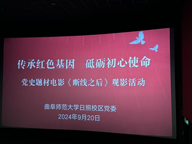 日照校区党委讯  为庆祝新中国成立75周年,深入学习贯彻党的二十大精神,加强日照校区党委党员干部爱国主义教育,9月20日日照校区党委组织开展了“传承红色基因 砥砺初心使命”主题观影活动,55名党员共同观看了党史题材电影《断线之后》。