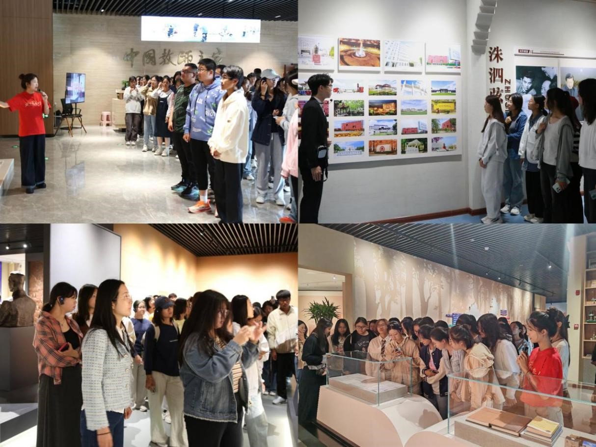 将爱校荣校教育融入思政课堂。9月21日,2024级新生依次走进校史馆和教师博物馆参观,在讲解员生动讲解下,学生们认真聆听学校发展历程、观赏珍贵藏品、审视历史手迹,探寻师道起源,领略师道传承,敬仰师道典范。