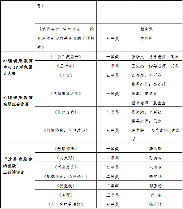 曲阜师大学生工作处讯 近日,山东省高等学校思想政治教育研究会、大学生心理健康教育专业委员会公布了2024年山东省高校心理健康教育月展示活动的评选结果,曲阜师大再获佳绩,共获得一等奖6项,二等奖6项,三等奖5项。