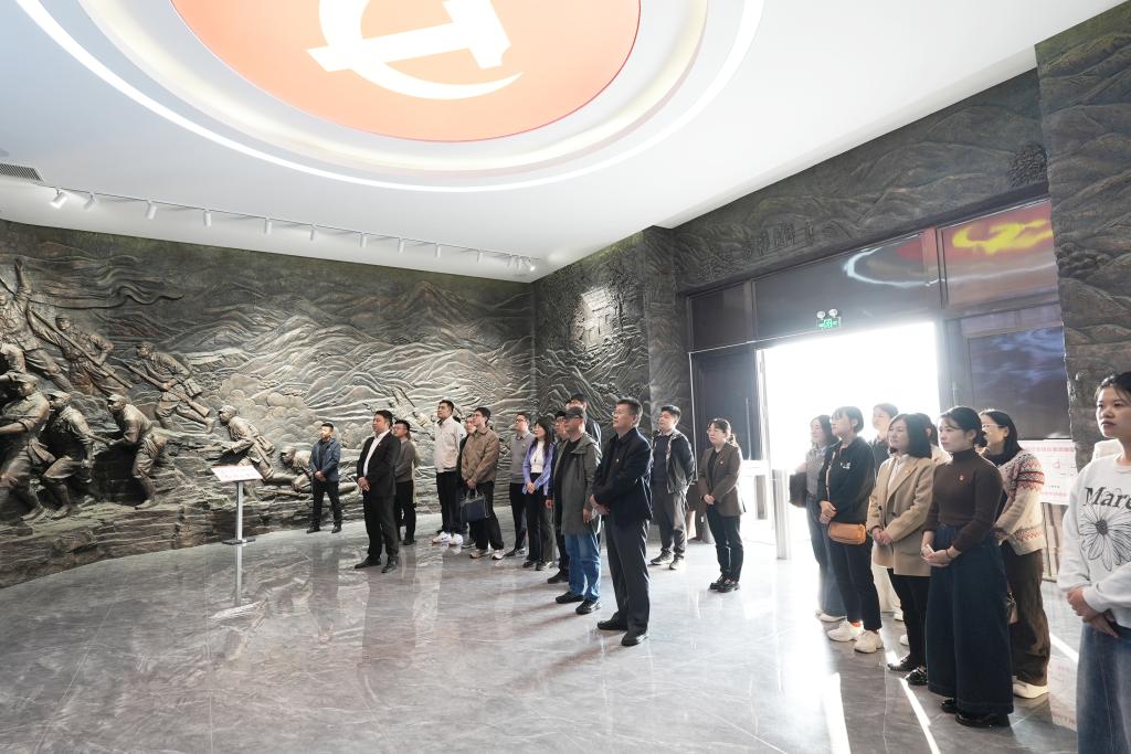 下午3点,成员一行抵达费县大青山胜利突围纪念馆,进行党性教育现场教学活动。在讲解员带领下,大家去追寻英雄足迹,感悟革命精神,重温了大青山突围战那段峥嵘岁月。全体参观人员在珍贵展品前驻足流连,不但深刻体会到了革命先辈们为了国家独立、民族解放而不惜牺牲生命的伟大精神,也让每一位学习者心中的爱国情感不禁油然而生。