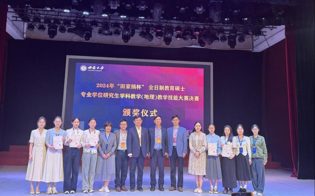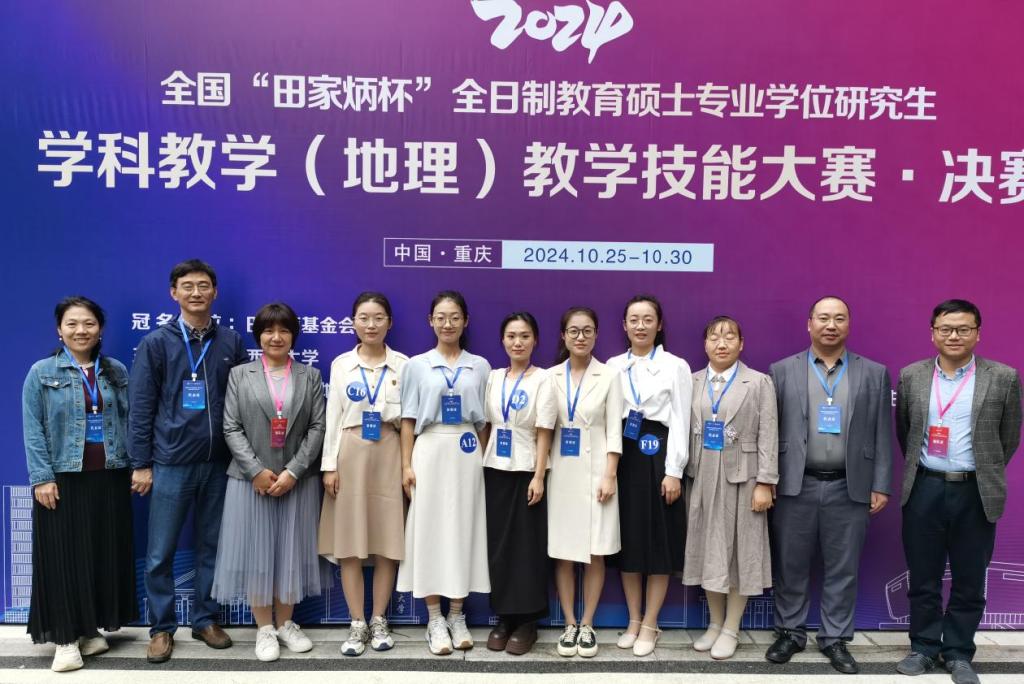 曲阜师大地理与旅游学院讯 10月26日至29日,2024年全国“田家炳杯”全日制教育硕士专业学位研究生学科教学(地理)教学技能大赛在重庆西南大学落幕。华体会官方网页版_华体会(中国)地理与旅游学院5名研究生全部进入决赛,2022级研究生张淑君荣获一等奖,2023级研究生刘雅荣获二等奖,2023级研究生李雅洁、李姗姗、时永欣荣获三等奖,周维国老师、张学波老师荣获“优秀指导教师”奖。曲阜师大获奖总数位列全国第一。
