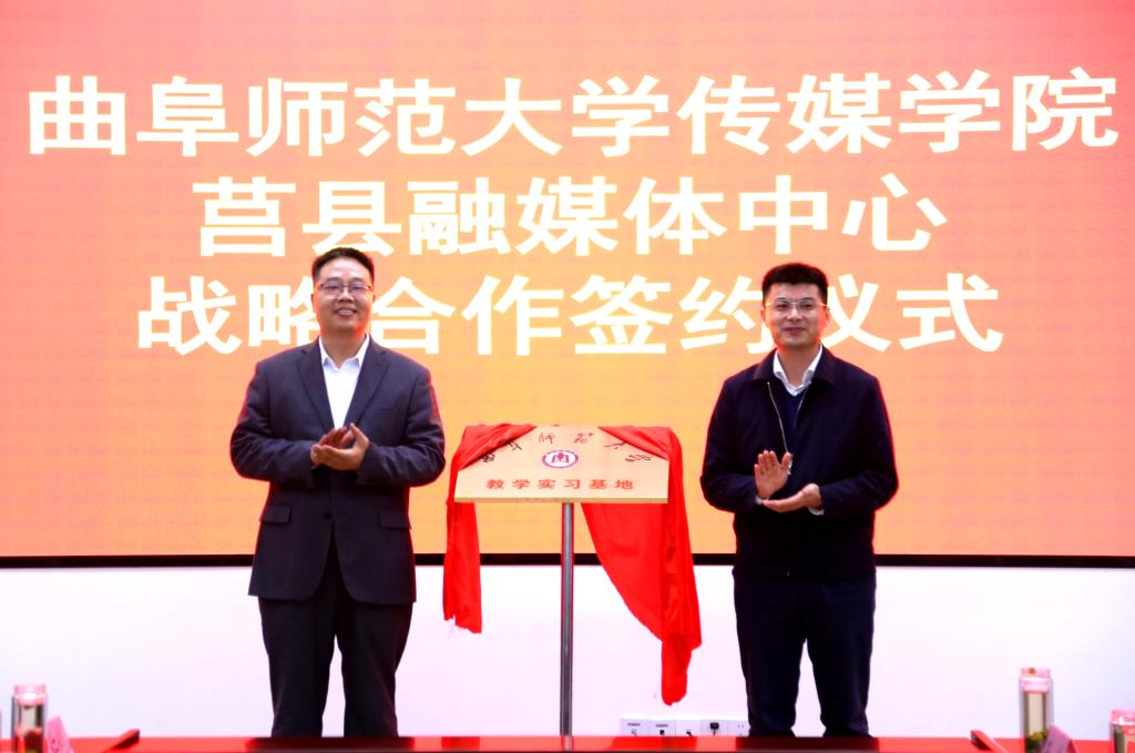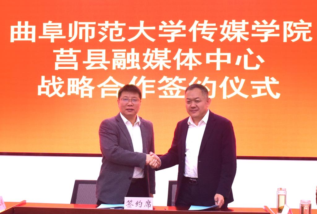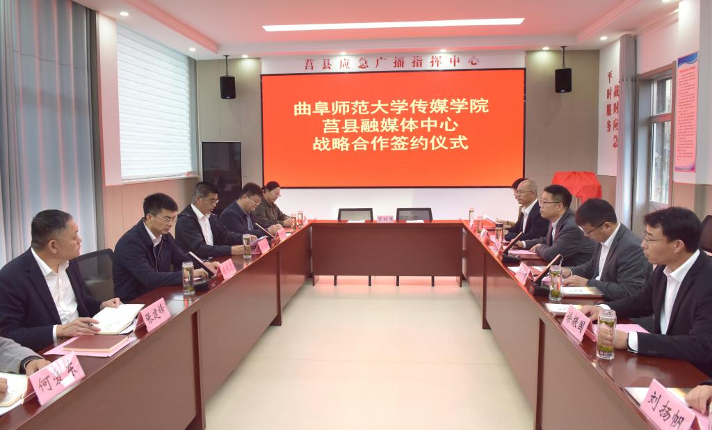 曲阜师大传媒学院讯 11月1日,华体会官方网页版_华体会(中国)传媒学院与莒县融媒体中心战略合作签约仪式在莒县融媒体中心举行。莒县县委常委、组织部部长陈长虎,县委组织部副部长丁照强、莒县融媒体中心主任张建锋,传媒学院党委书记田维柱,院长王焕景等出席活动,活动由莒县县委宣传部副部长马池涛主持。