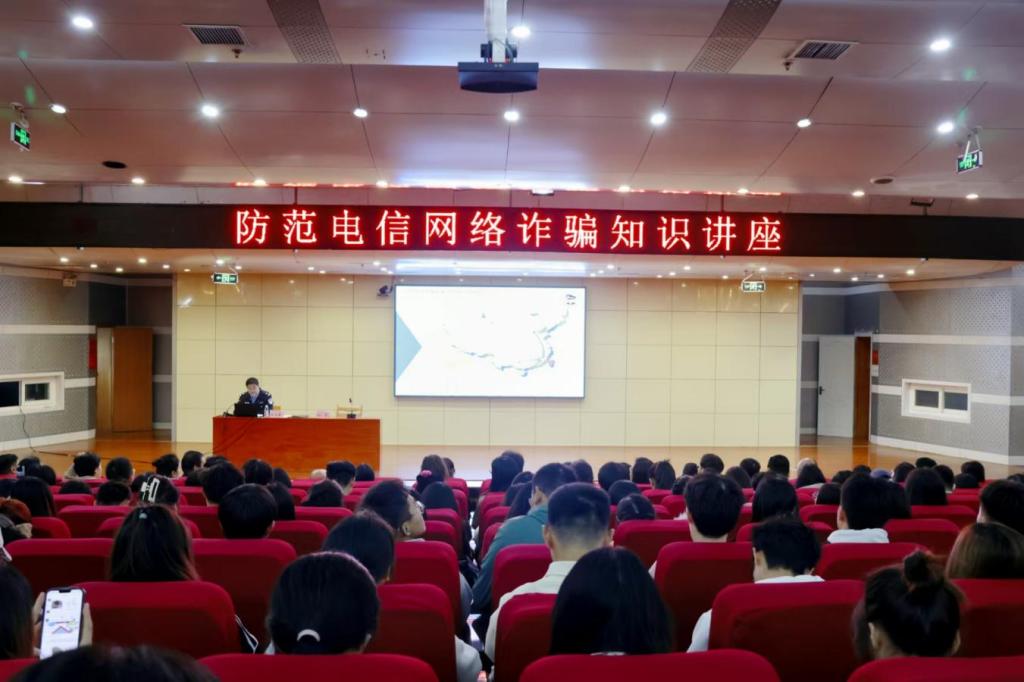 宋玉敏围绕电信网络诈骗现状、常见高发电信网络诈骗类型、如何防范电信诈骗等方面讲授了识别新型诈骗、增强自身防骗意识和能力等有关知识;并通过对典型案例的分析,告诫广大师生新型诈骗犯罪手段不断翻新,要牢记未知链接不点击、陌生来电不轻信、个人信息不透露、转账汇款多核实的“三不一多”防诈口诀,提高鉴别能力;针对涉电信网络诈骗关联违法犯罪进行警示提醒,宋玉敏告诫广大师生不出租、出借、出售“两卡”、不参与“两卡”犯罪,避免成为电诈的“工具人”。