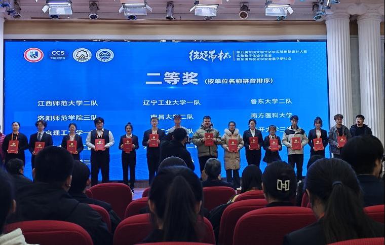 曲阜师大化学与化工学院讯 12月8日,由中国化学会、教育部高等学校国家级实验教学示范中心联席会联合主办、北京微瑞集智科技有限公司协办、沈阳师范大学、大连理工大学承办的“微瑞杯”第五届全国大学生化学实验创新设计大赛——实验数字化设计竞赛落幕,曲阜师大化学与化工学院本科生获全国一等奖(山东省唯一获奖团队)和二等奖各1项。化学与化工学院首次进入该赛事的全国总决赛,并实现了在该赛事上的新突破。