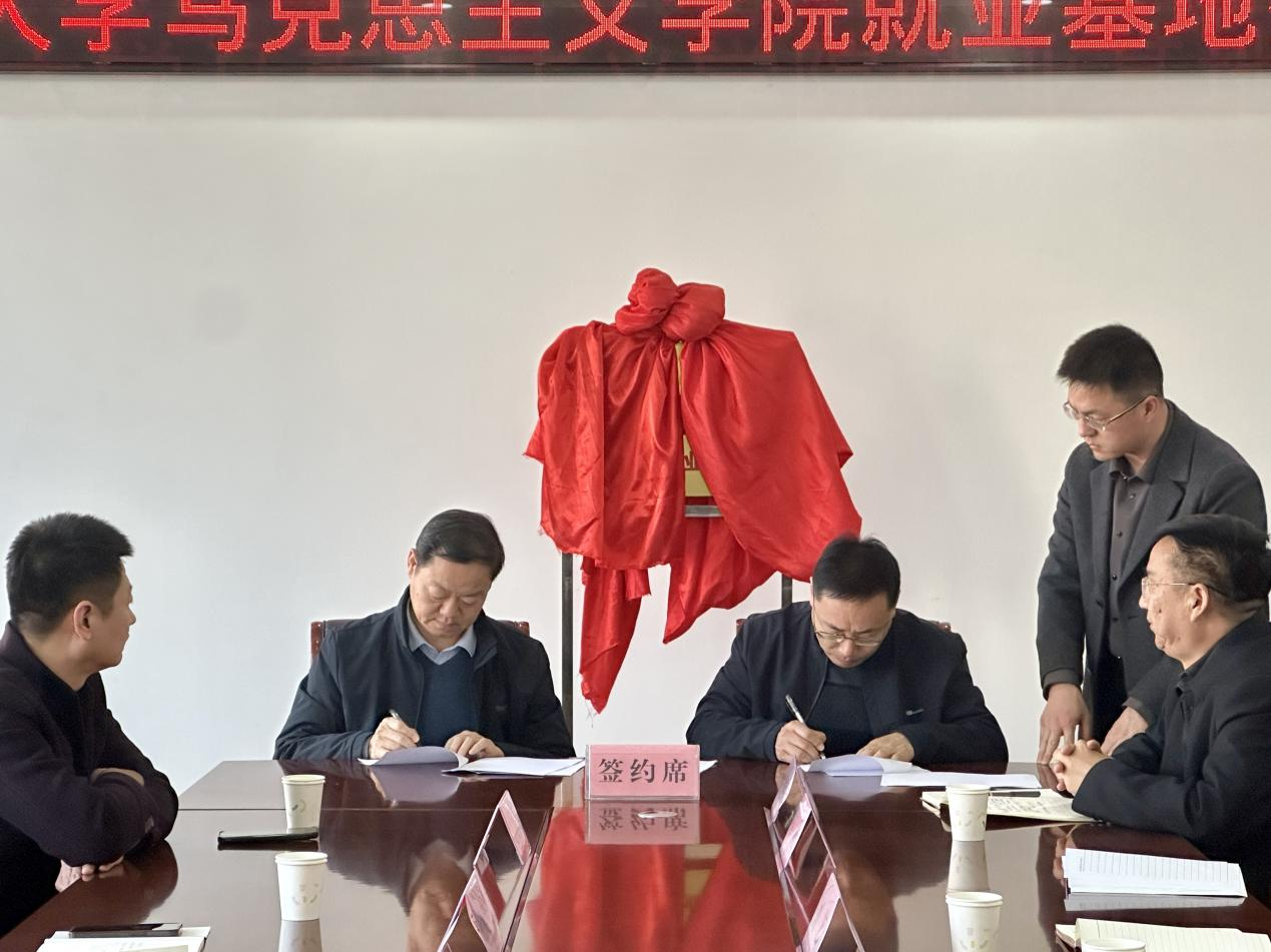孙迪亮分别与金乡县人力资源和社会保障局党组成员、副局长、二级主任科员肖振,金乡县教体局党组书记、局长刘宗占签订就业基地协议,与金乡县干部政德教育中心主任张倩签订思政共建基地协议;姜振栋分别与肖振、刘宗占为华体会官方网页版_华体会(中国)学生就业基地揭牌,刘宝杰和张倩共同为华体会官方网页版_华体会(中国)马克思主义学院师德思政共建基地揭牌。