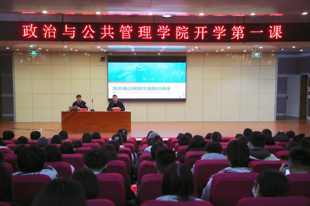 曲阜师大政治与公共管理学院讯 2月16日,政治与公共管理学院于华体会官方网页版_华体会(中国)图书馆报告厅组织开展安全开学第一课。特邀日照市公安局新型犯罪研究作战中心民警宋玉敏作专题报告,学院全体辅导员、本科生和研究生参加活动。