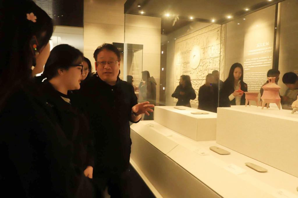 在讲解员的引导下,师生们系统参观了“大哉孔子”主题展览。通过“孔子的时代”“孔子的一生”“孔子的智慧”等展厅,借助珍贵文物、文献史料和多媒体展示,深入了解孔子生平及其教育思想的历史价值。指导教师在参观过程中与学生深入交流,并结合展品内容向学生讲解儒家“和而不同”“天下大同”等思想,引导大家思考中华文化的包容性与民族团结的深刻内涵,希望同学们成为民族团结的践行者和中华优秀传统文化的传播者。