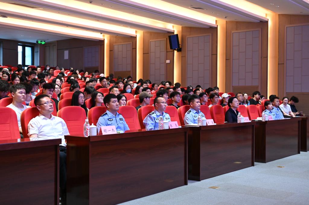 山贵峰在《警惕诈骗新手法,不做电诈工具人》主题报告中重点围绕什么是电信诈骗、电信诈骗的常见形式、如何识别防范电信诈骗和避免成为帮助犯等四个方面做了详细介绍。对电信诈骗的定义进行了详细分解,并通过所总结简单易懂的公式,使大家一目了然地认识电信诈骗的几个关键要素。他通过丰富详实的真实案件,分析了电信诈骗发生的过程,使大家深入了解了嫌疑人的常用作案手法、被骗者的心态等。他强调,大学生要切实提高法律意识和警惕意识,杜绝非法出租出借各类账号,转发扩散诈骗信息等行为,避免有意和无意地成为“帮信人”“帮助犯”。
