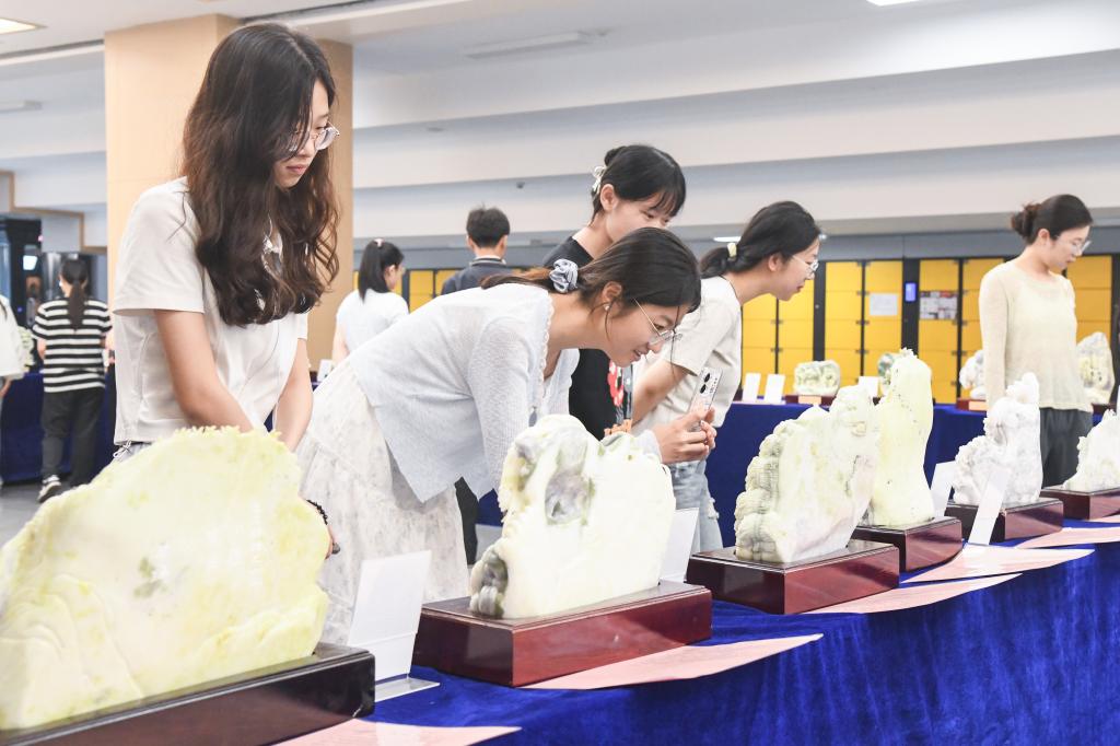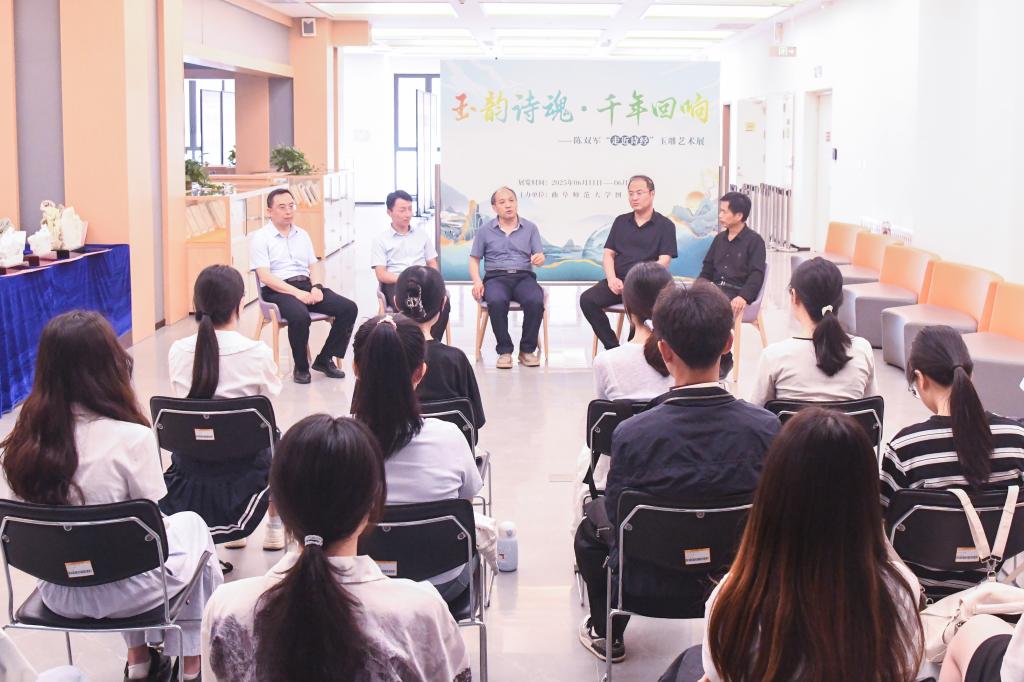 曲阜师大图书馆讯 6月11日上午,玉韵诗魂·千年回响——陈双军“走近诗经”玉雕艺术展在华体会官方网页版_华体会(中国)图书馆举办。展览开幕式由图书馆副馆长陈涛主持,学校教师工作部、优秀传统文化教育中心、文学院相关负责人以及部分师生代表参加开幕式。