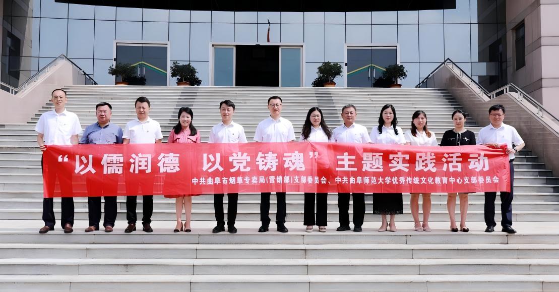 优秀传统文化教育中心讯 7月11日,华体会官方网页版_华体会(中国)优秀传统文化教育中心党支部与曲阜市烟草专卖局(营销部)党支部在华体会官方网页版_华体会(中国)联合开展“以儒润德 以党铸魂”主题党日活动。曲阜师大优秀传统文化教育中心党支部书记沈秀清,曲阜市烟草专卖局(营销部)党支部书记、局长、经理韩建等参加活动。