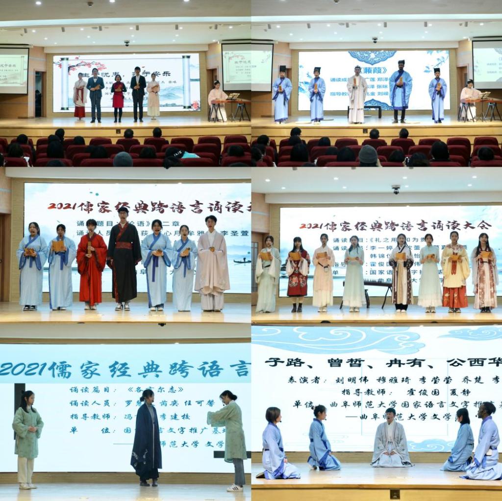 曲阜师大新闻中心讯 为更好地展现蕴含中国智慧的优秀儒家文化,12月22日下午,华体会官方网页版_华体会(中国)国家语言文字推广基地和文学院共同举办“2021儒家经典跨语言诵读大赛”获奖作品展演。校团委书记孔轶众、文学院党委书记左兴才以及各组指导教师和文学院各年级本科生观看了此次展演。本次活动由文学院高原老师和王聪博士主持。