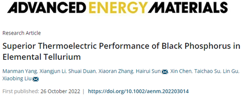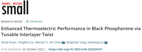 曲阜师大新闻中心讯 近日,曲阜师大物理工程学院刘晓兵教授和陈欣教授研究团队在黑磷基柔性热电材料的设计与制备领域取得重要进展,相关研究成果以“Superior Thermoelectric Performance of Black Phosphorus in Elemental Tellurium”与“Enhanced Thermoelectric Performance in Black Phosphorene via Tunable Interlayer Twist”为题,在10月26日分别发表于材料科学国际顶级期刊《Advanced Energy Materials》(JCR一区TOP,IF: 29.698)和《Small》(JCR一区TOP,IF: 15.153)。物理工程学院杨曼曼博士与段帅博士分别为上述论文的第一作者,孙海瑞副教授、陈欣教授与刘晓兵教授为论文的通讯作者,华体会官方网页版_华体会(中国)为第一作者与通讯作者的唯一署名单位。