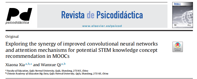 “Exploring the synergy of improved convolutional neural networks and attention mechanisms for potential STEM knowledge concept recommendation in MOOCs”一文发表在心理学大类一区期刊Revista de Psicodidáctica。本文关注MOOCs中的STEM学习行为,探讨深度学习路径,设计了一种新的方法来处理知识概念推荐的上下文特征和内容特征。整个研究为跟踪学习者可能的心理变化、改善学习行为趋势、提高STEM学习过程中的学习质量、全面改善和优化学习状态、为积极的学习兴趣构建有效的决策提供关键支持。