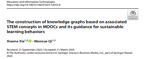 “The construction of knowledge graphs based on associated STEM concepts in MOOCs and its guidance for sustainable learning behaviors”一文发表在教育学大类TOP期刊Education and Information Technologies。本文以海量MOOCs学习行为实例为研究对象,提出了基于STEM关联概念的知识图谱分析与预测模型,以期为可持续的高效学习行为构建和引导提供关键决策。整个研究可为MOOCs优化STEM的交叉关联学习过程提供技术支持和决策依据,具有很强的创新性和实践性。