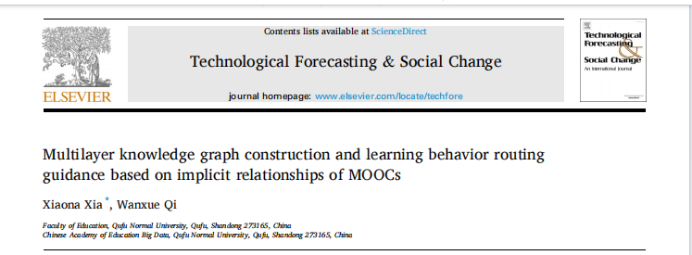 “Multilayer knowledge graph construction and learning behavior routing guidance based on implicit relationships of MOOCs”一文发表在管理学大类TOP期刊Technological Forecasting & Social Change。本文分析MOOCs中知识图谱的应用场景、关键特征和需要论证的关键问题,构建了MOOCs多层知识图谱预测模型,实现了隐式关系驱动的学习行为路由引导策略。整个研究具有很强的理论价值和实践意义,为MOOCs个性化和适应性学习流程的构建和优化提供关键的技术支持和决策依据。