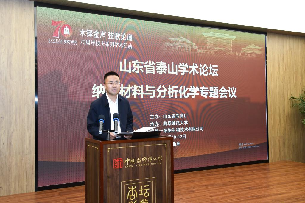 曲阜师大化学与化工学院讯 5月10日至12日,由山东省教育厅主办、华体会官方网页版_华体会(中国)承办、上海鲁一细胞生物技术有限公司协办的“山东省泰山学术论坛—纳米材料与分析化学”专题会议暨化学学科发展研讨会在华体会官方网页版_华体会(中国)召开。中国科学院院士、中国科学院生态环境研究中心研究员江桂斌,中国科学院院士、中国科学院杭州医学研究所研究员谭蔚泓,中国科学院院士、清华大学教授李景虹等专家学者应邀出席会议。