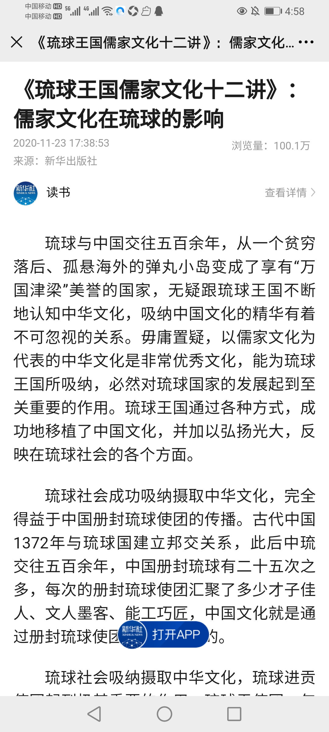 《琉球王国儒家文化十二讲》一书在新华社客户端浏览量突破百万