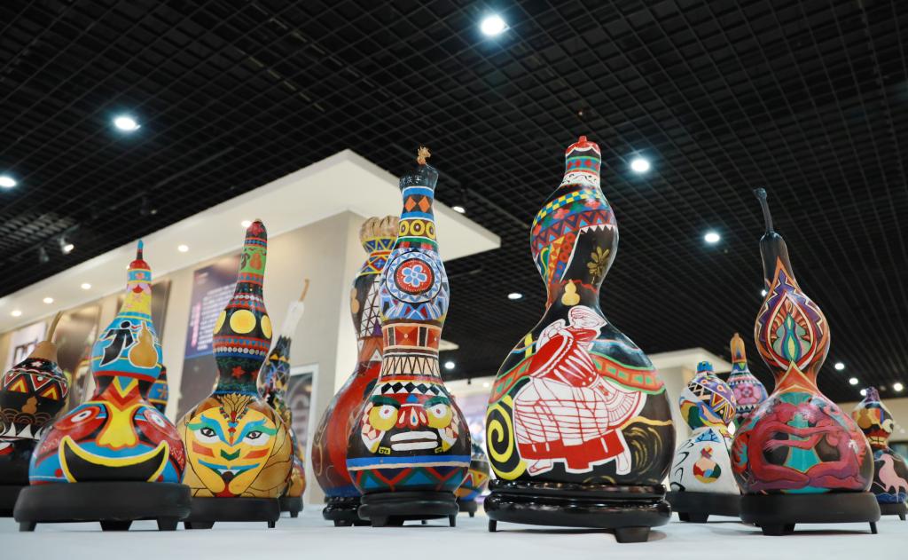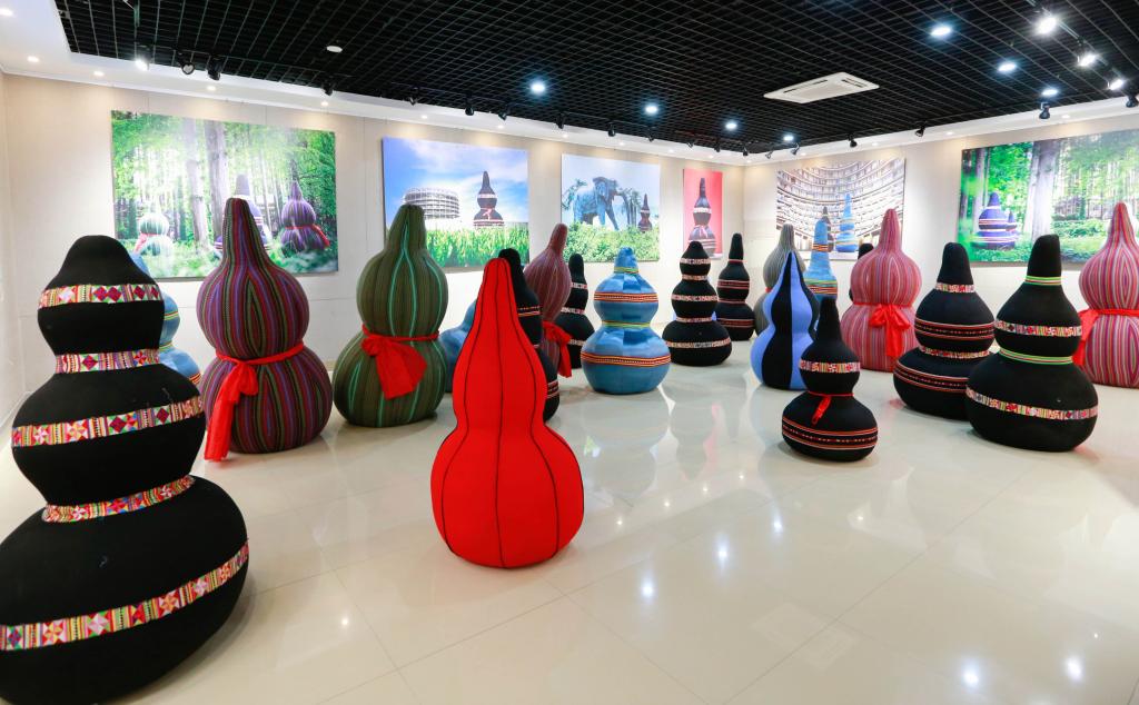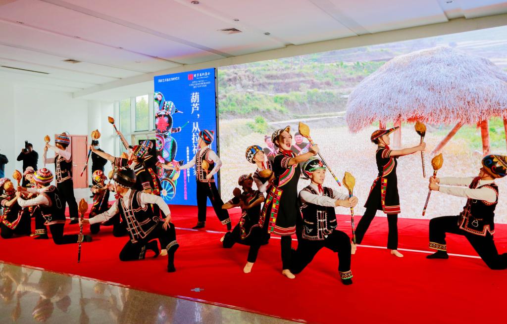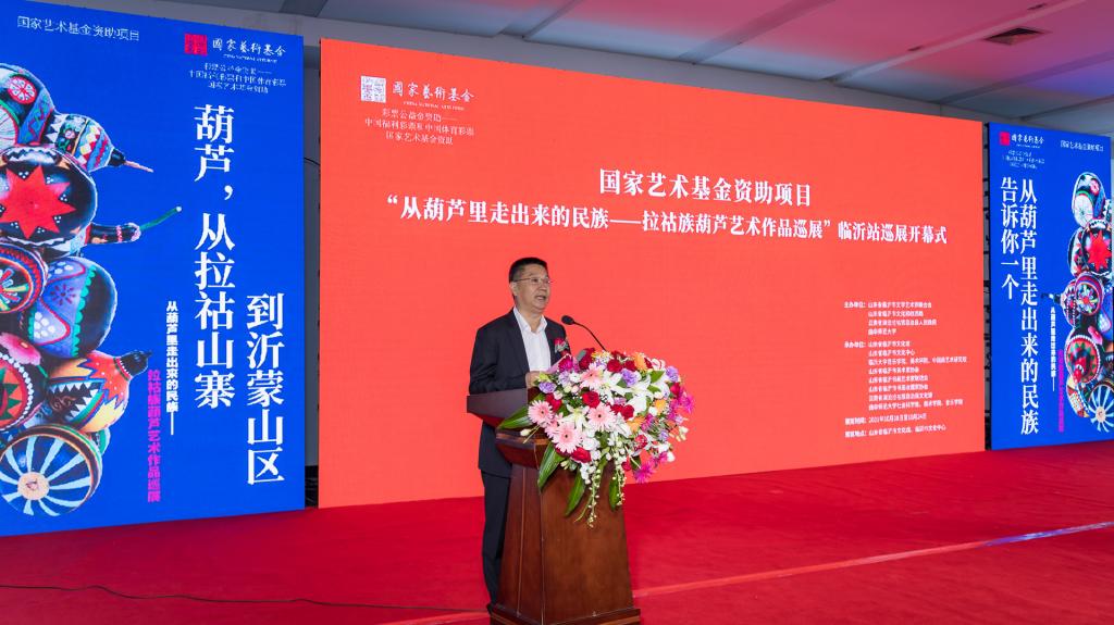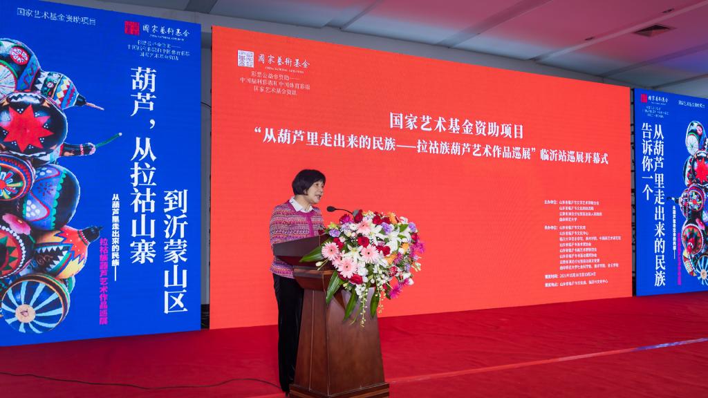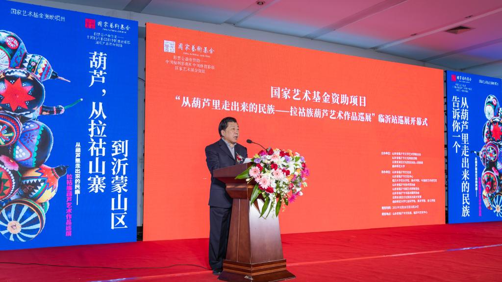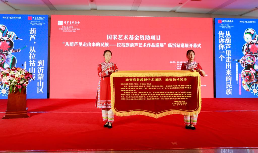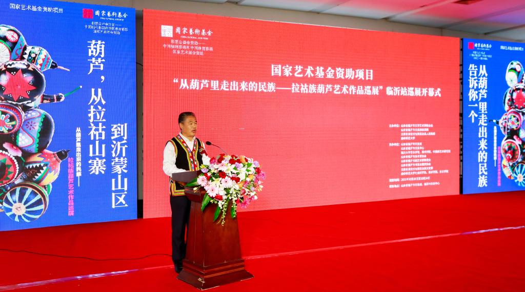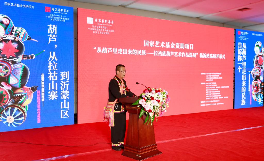 曲阜师大新闻中心讯 “太漂亮了,能看到这么多精美的葫芦艺术作品,是一次很愉快的体验和享受……” 10月18日上午,临沂市文化馆、临沂市文化中心展厅内热闹非凡,国家艺术基金资助项目“从葫芦里走出来的民族——拉祜族葫芦艺术作品巡展”走进沂蒙革命老区,在临沂市文化中心一层北大厅隆重开幕。国家非物质文化遗产“拉祜族芦笙舞”表演,一百余个彩绘葫芦,八十余幅葫芦绘画作品,近百幅葫芦文化传播作品,获得国家专利的当代拉祜布艺葫芦,与沂蒙山“葫芦崖”上的古老美丽传说在这里邂逅,共同“讲述葫芦故事,传承中华文化”,还有形态各异的葫芦乐器、葫芦盛器等精彩呈现,为临沂市民带来了一场极具冲击力的文化体验与艺术享受。